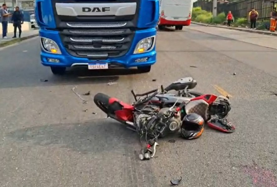 Duas pessoas ficam feridas após colisão entre caminhão e moto na 'Avenida das Torres' em Manaus